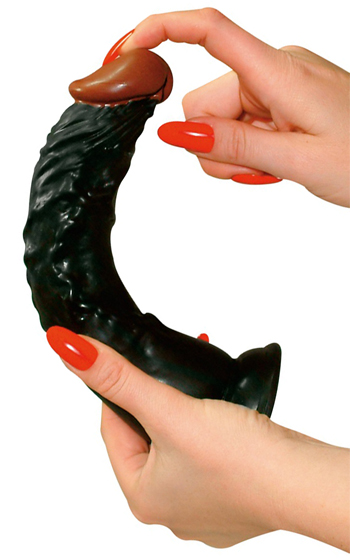 Beskrivning: Mycket realistisk mörk dong för dig som vill ha en lång dong utan pung. Kraftig sugkopp i botten för handsfree-lekar. Grova ådror som påminner om en riktig snopp med monterad penisring som gjort den kraftigt erigerad.