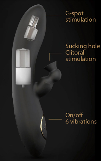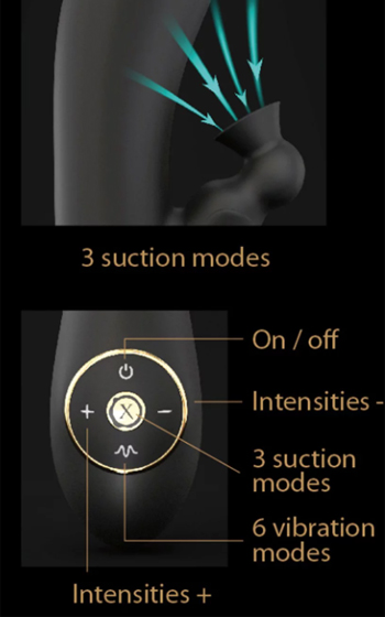 Beskrivning: Elegant och kraftfull vibrator som kombinerar riktad G-punktstimulans med lufttrycksstimulering för klitoris. Den är tillverkad av ftalatfritt silikon och ABS, vilket ger en len och behaglig yta. Med två motorer och tio vibrationslägen finns det gott om möjligheter att variera upplevelsen, och de tre olika suglägena gör att intensiteten enkelt kan anpassas efter behov.