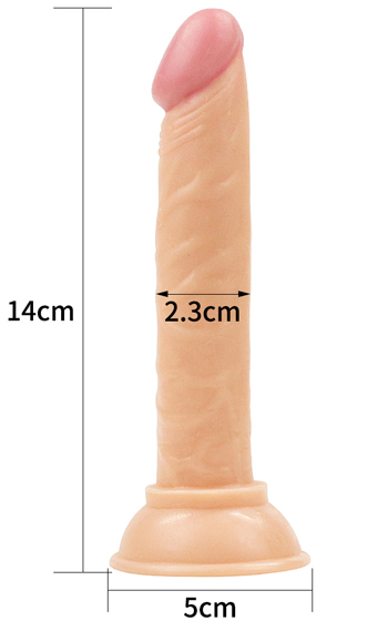 Beskrivning: Realistiskt nöje i kompakt form. Ge dig själv eller din partner en känsla av intensiv njutning en naturtrogen dildo som är lite smalare och kortare än den genomsnittliga dildon. Dildon är mjuk och flexibel, samt tillverkad av hudvänligt PVC-material som känns naturligt.