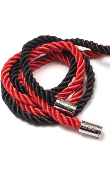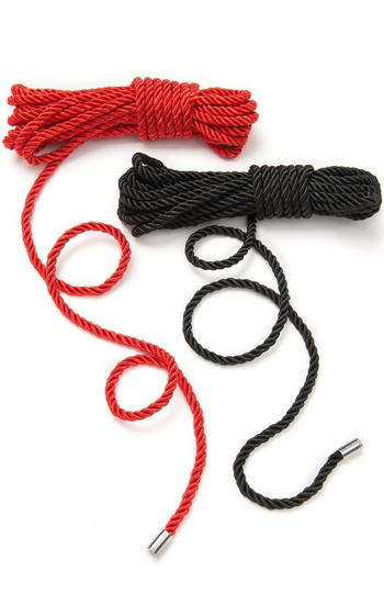 Varje rep är 5 meter långt – perfekt för både klassiska bindningar och mer kreativa positioner. Metalländarna håller trådarna på plats och ger dessutom en snygg finish som gör helhetsintrycket ännu mer exklusivt. Tillverkade i slitstark polypropen med metallavslut - ett tillförlitligt val för både nybörjare och erfarna. Från den officiella Fifty Shades serien.