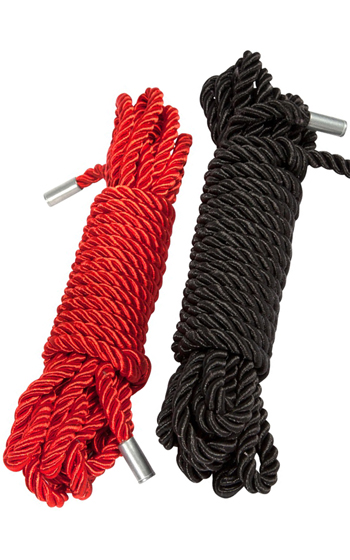 Beskrivning: Sätt scenen för fängslande lekar med detta stilrena set som innehåller två rejäla bondage-rep - ett i svart och ett i rött. Repen har en vacker, silkeslik glans och känns både lyxiga och följsamma mot huden. Med sin grova struktur (6 mm i diameter) ger de ett stabilt grepp, samtidigt som de är mjuka nog för längre sessioner.