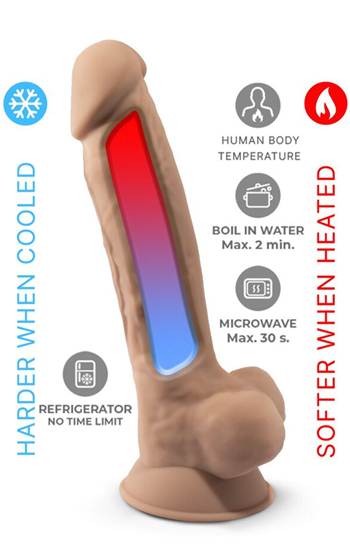 Med termoreaktiv silikonteknik kan du anpassa fastheten efter temperatur - kyl ner den för en mer solid känsla eller värm upp den för att göra den mjukare och mer följsam. Den har även en stark sugkopp vid basen, vilket gör att den sitter stadigt på plana ytor och kan användas med sele för extra mångsidighet.