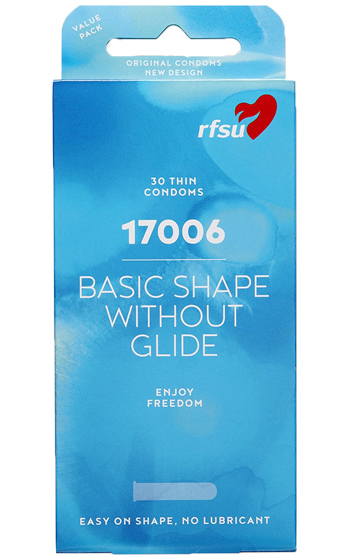 Beskrivning: 17006 är en helt rak kondom från RFSU som inte är glidmedelsbehandlad. Kondomen passar bra för dig som själv vill använda ditt egna glidmedel som håller högre kvalitet och fungerar bättre än RFSU's egna. Ofärgad, tillverkad av latex med en slät och helt rak yta som du kan se på extrabilden. Kondomen passar bäst på dig som har omkrets 11-12 cm på penis.