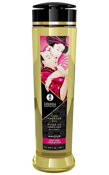 Beskrivning: Shungas lyxiga massageoljor är skapade för att väcka både kropp och sinne. Den silkeslena formulan bygger på 100% kallpressade, naturliga oljor och berikats med hudvårdande vitamin E som gör huden mjuk och smidig utan att kännas kladdig. Oljan glider lätt över kroppen och lämnar efter sig en sammetslen känsla, vilket gör den till ett självklart inslag i både intima stunder och avkopplande helkroppsmassager.